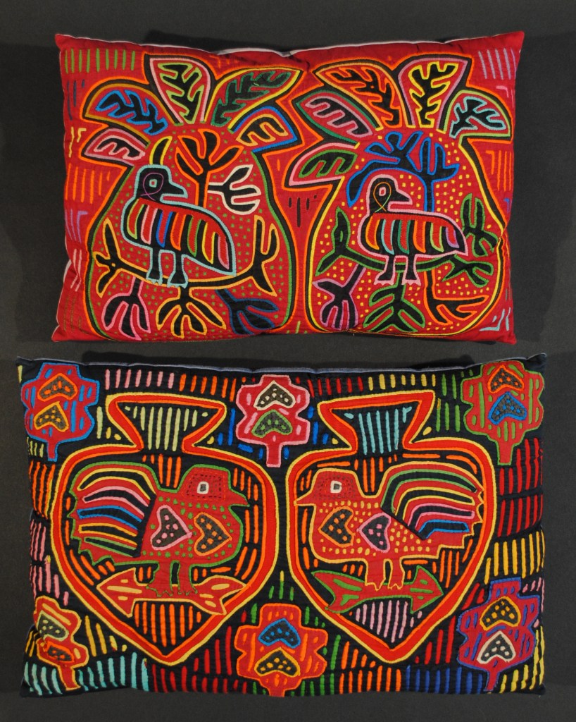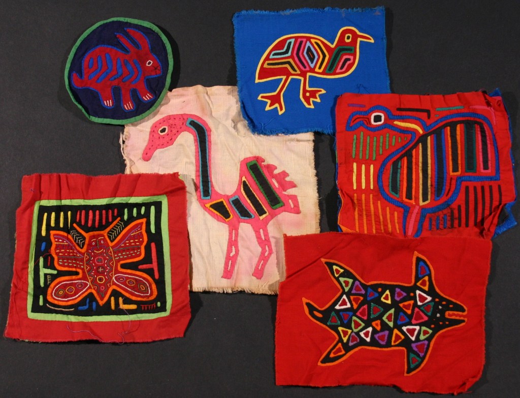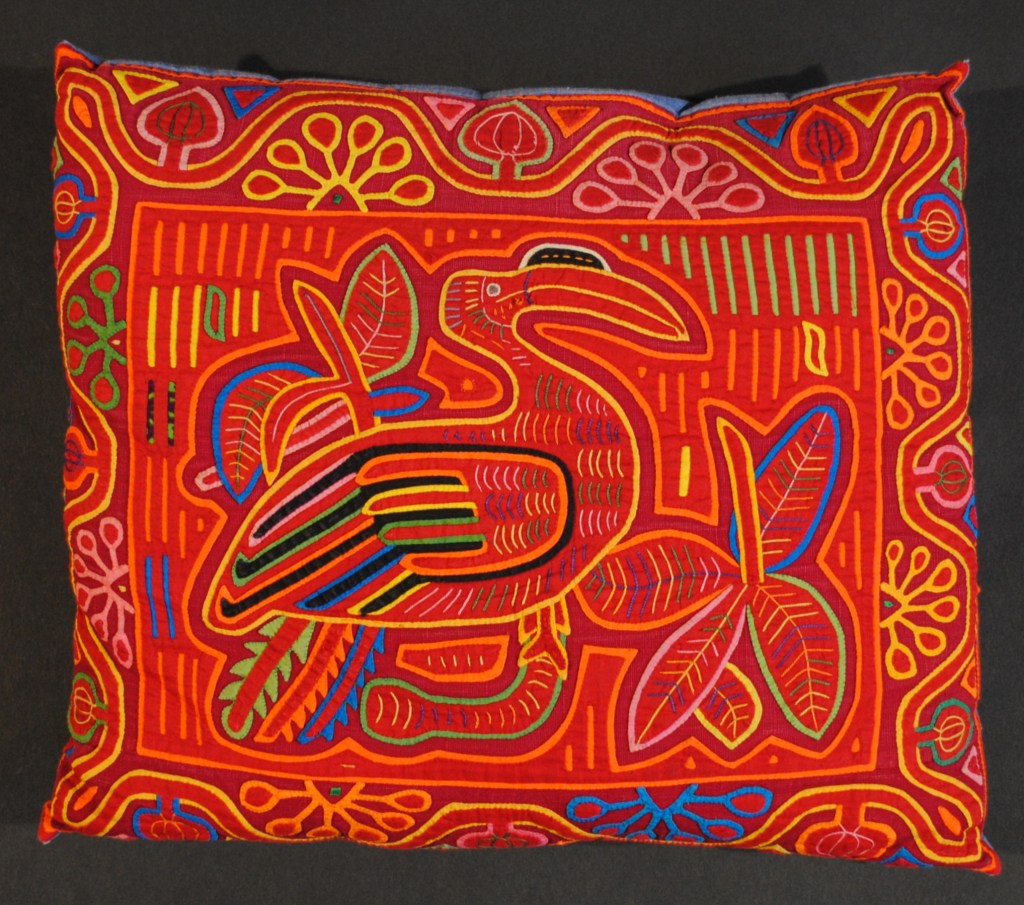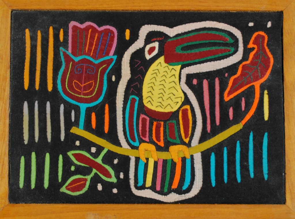 My parents began collecting molas in the 1950s and continued through the 1980s; purchased from the Cuna women of the San Blas Islands (now known as the Guna of Guna Yala.) The women would bring their colorful textiles to places that Canal Zonians, Panamanians and tourists would gather – Stevens Circle in Balboa, the visitor’s center at Miraflores locks and the El Panama hotel to Flory Saltzman’s craft shop. My parents collected their molas from these places and while visiting the San Blas Islands. They framed and displayed them; some of the molas were made into functional art pieces such as pillows and a skirt or presented to other family members as gifts from Panama. Mola art was a vibrant accent in our lives in Panama and was appreciated by us all. The three decades my parents spent in Panama forever changed and enriched our lives and theirs.