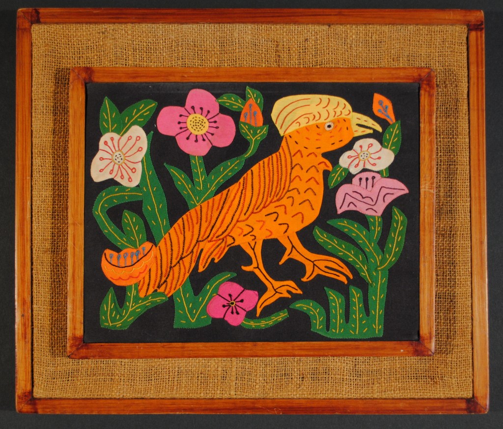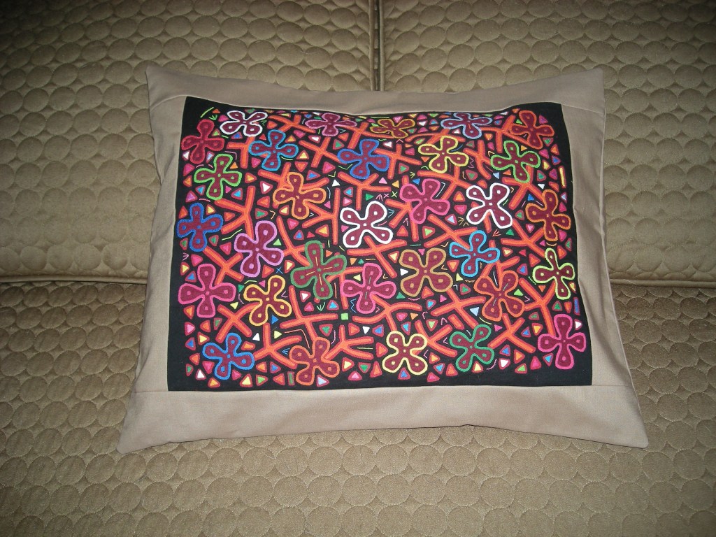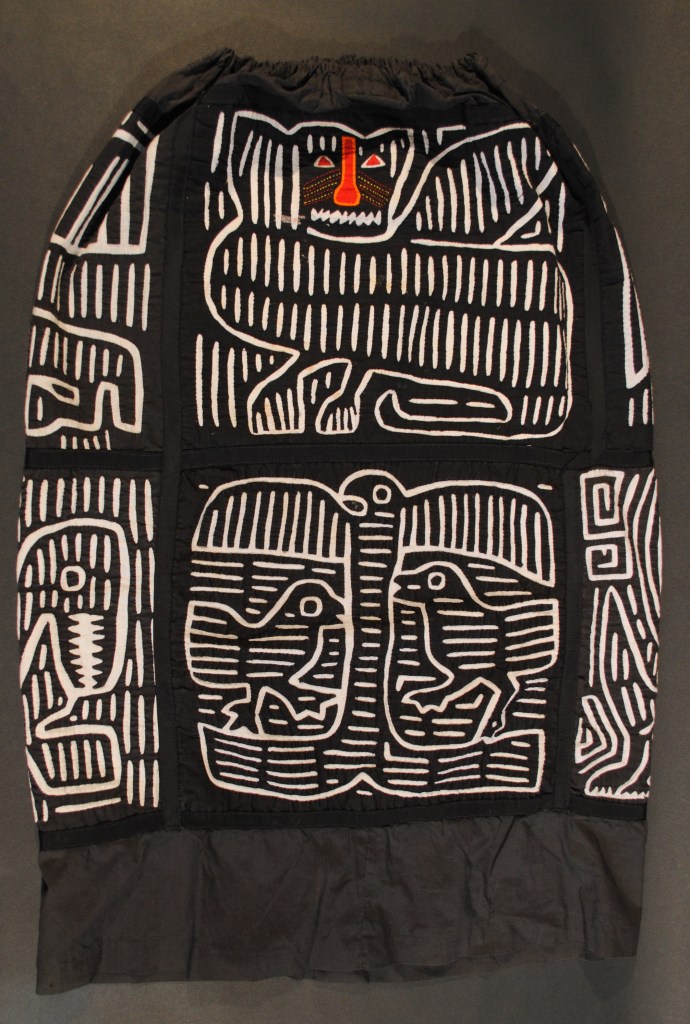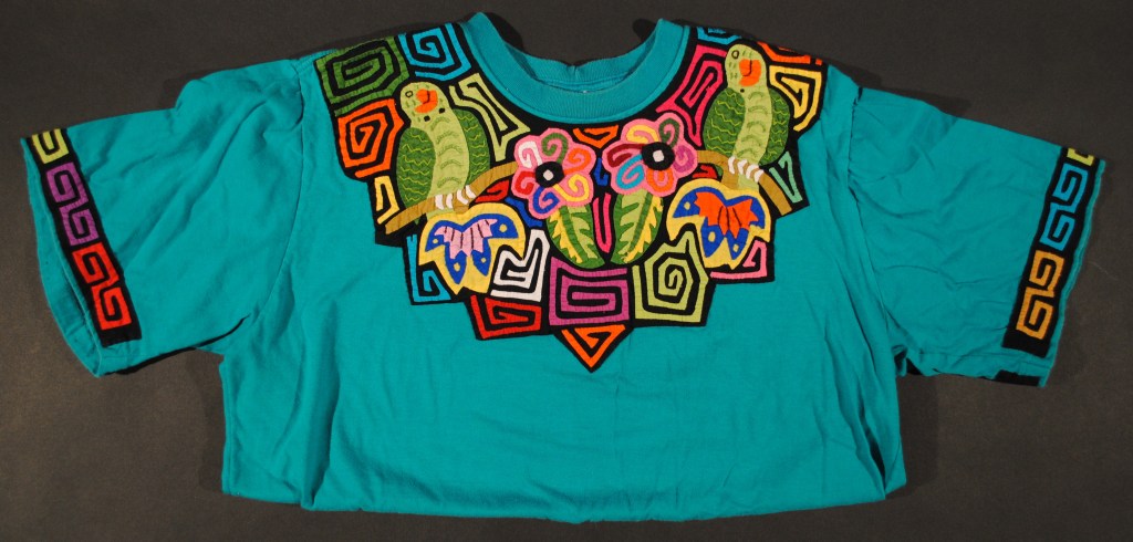 My parents began collecting molas in the 1950s and continued through the 1980s; purchased from the Cuna women of the San Blas Islands (now known as the Guna of Guna Yala.) The women would bring their colorful textiles to places that Canal Zonians, Panamanians and tourists would gather – Stevens Circle in Balboa, the visitor’s center at Miraflores locks and the El Panama hotel to Flory Saltzman’s craft shop. My parents collected their molas from these places and while visiting the San Blas Islands. They framed and displayed them; some of the molas were made into functional art pieces such as pillows and a skirt or presented to other family members as gifts from Panama. Mola art was a vibrant accent in our lives in Panama and was appreciated by us all. The three decades my parents spent in Panama forever changed and enriched our lives and theirs.