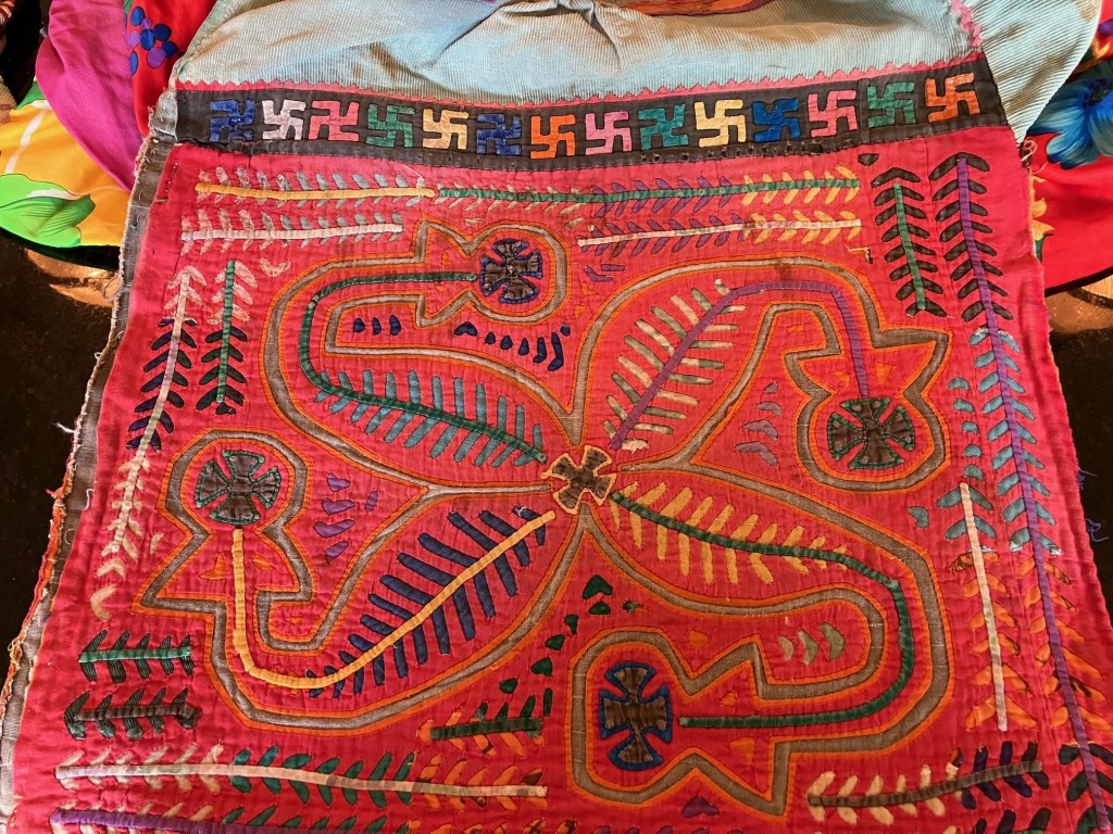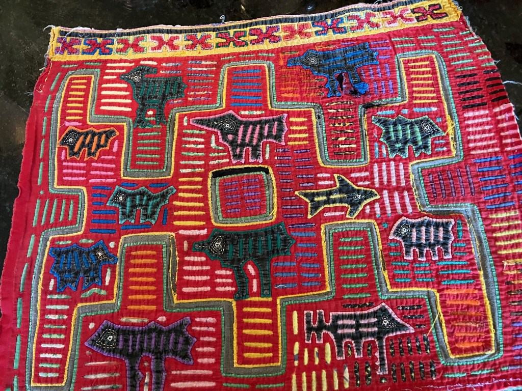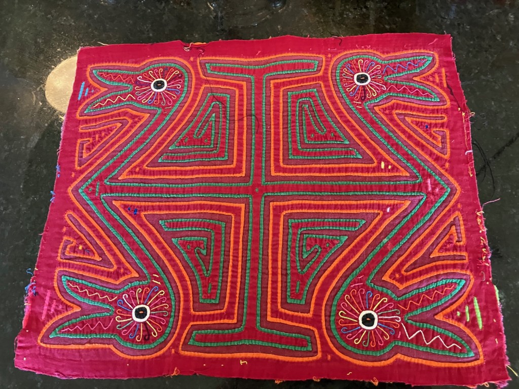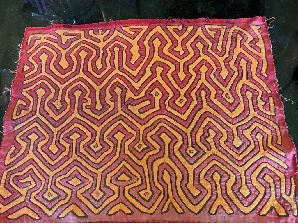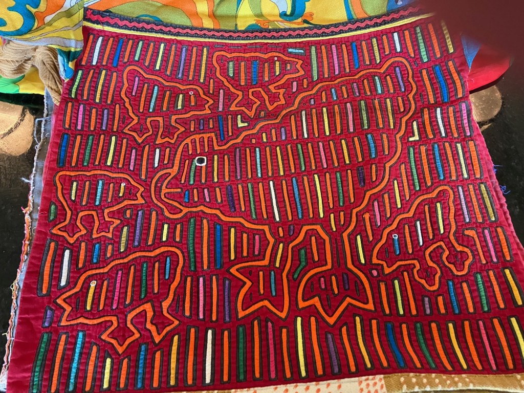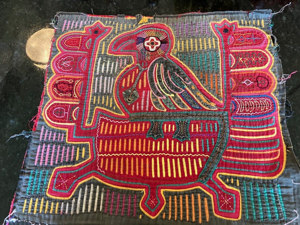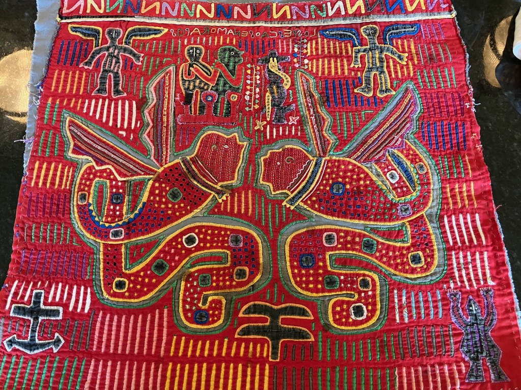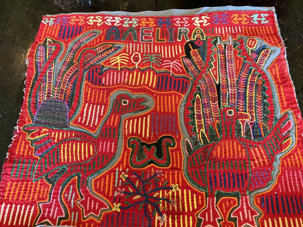 History of the Taylor Blanton Collection: I lived in Panama from 1972 to 1974 and went to the San Blas Islands at least once a month during those 2 years. We always stayed on Wichubwala where there were two outstanding mola makers-Gladys Iglesias and Yolanda Gonzalez. I have a collection of many single molas, most of which were purchased in the islands but some of which were purchased from Flory Saltzman.
