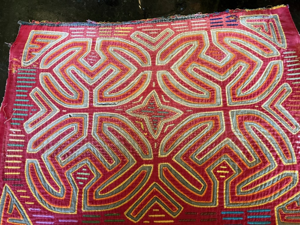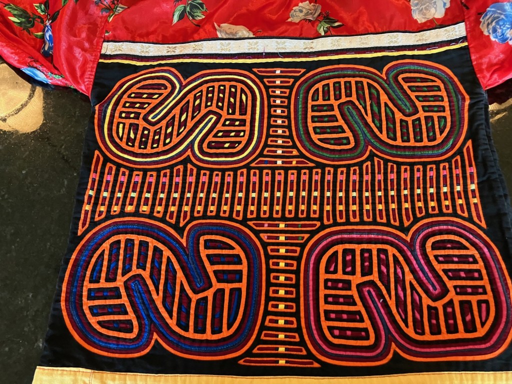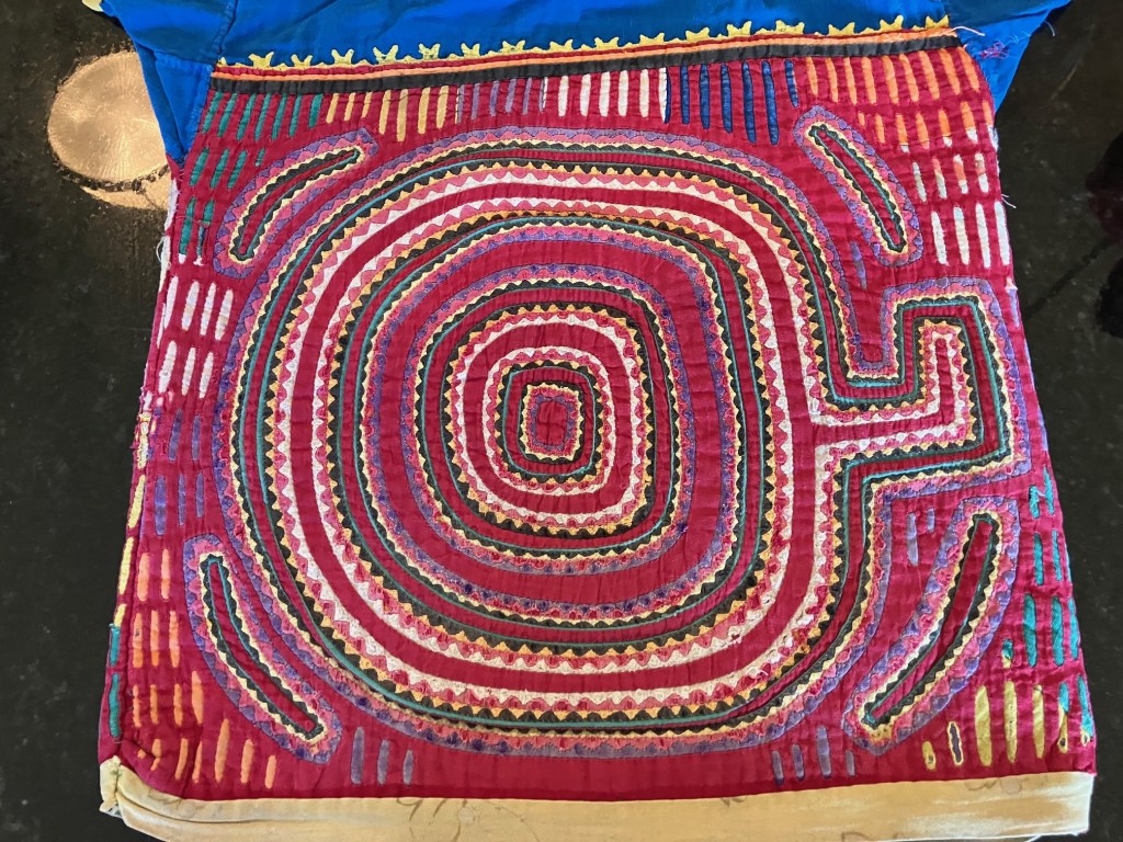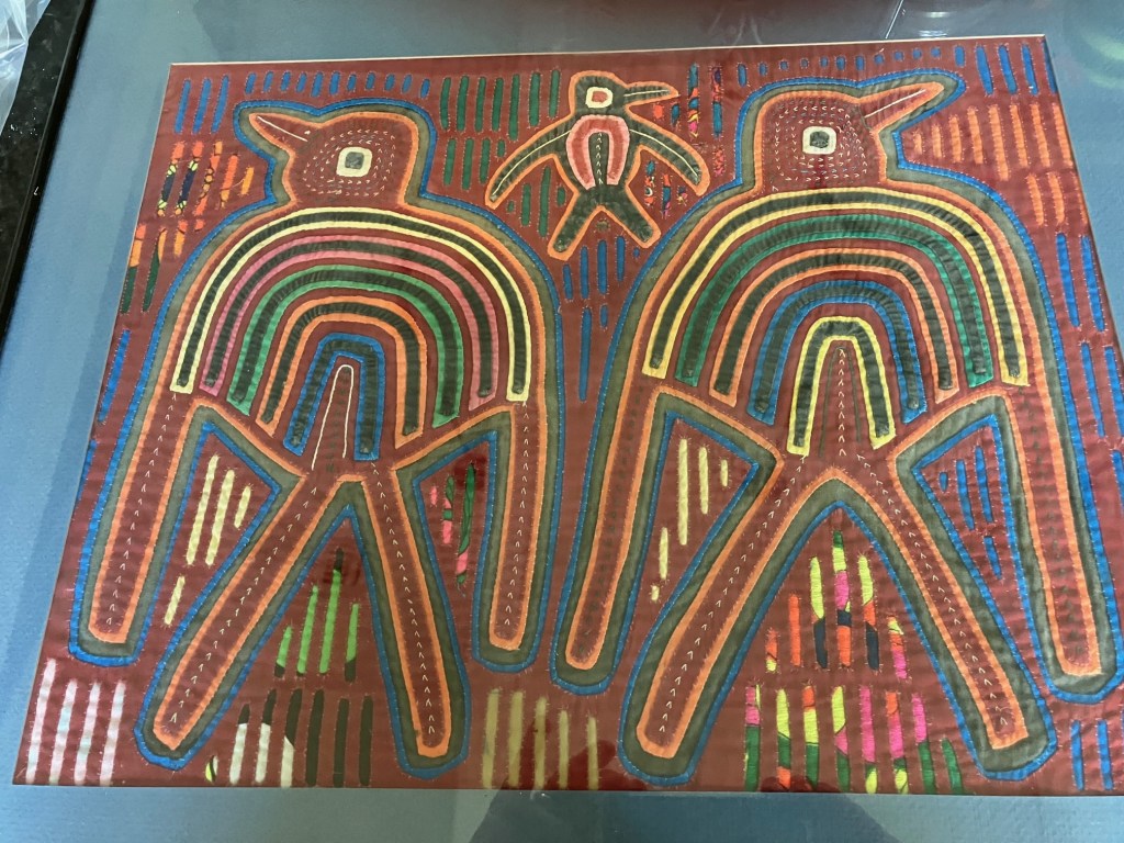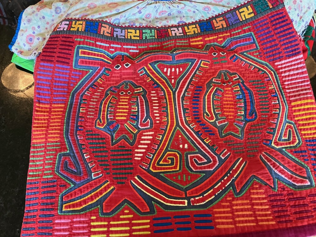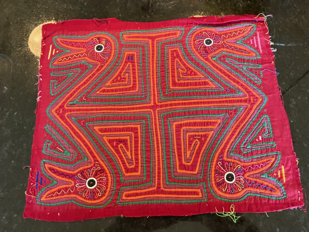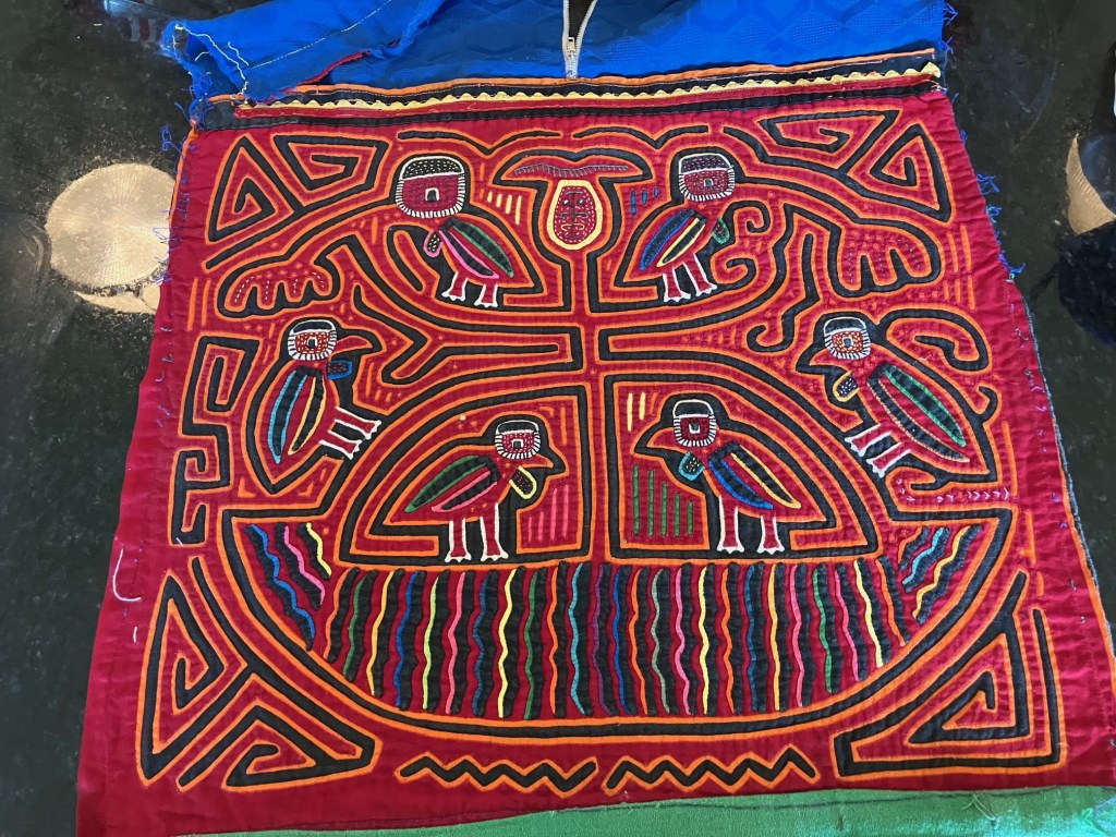 History of the Taylor Blanton Collection: I lived in Panama from 1972 to 1974 and went to the San Blas Islands at least once a month during those 2 years. We always stayed on Wichubwala where there were two outstanding mola makers-Gladys Iglesias and Yolanda Gonzalez. I have a collection of many single molas, most of which were purchased in the islands but some of which were purchased from Flory Saltzman.