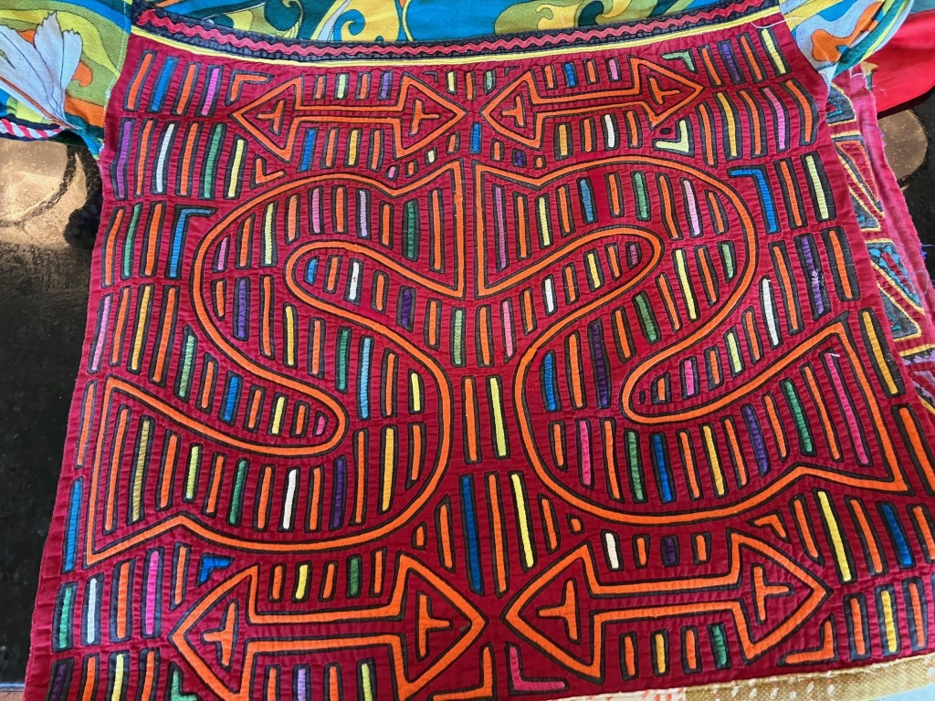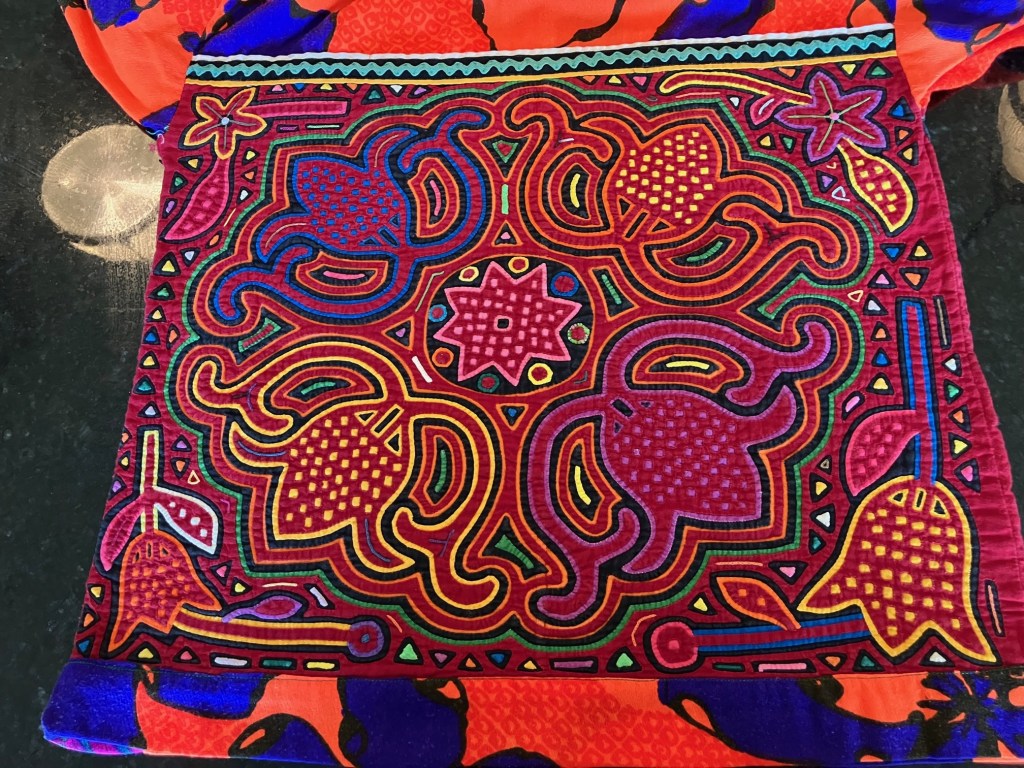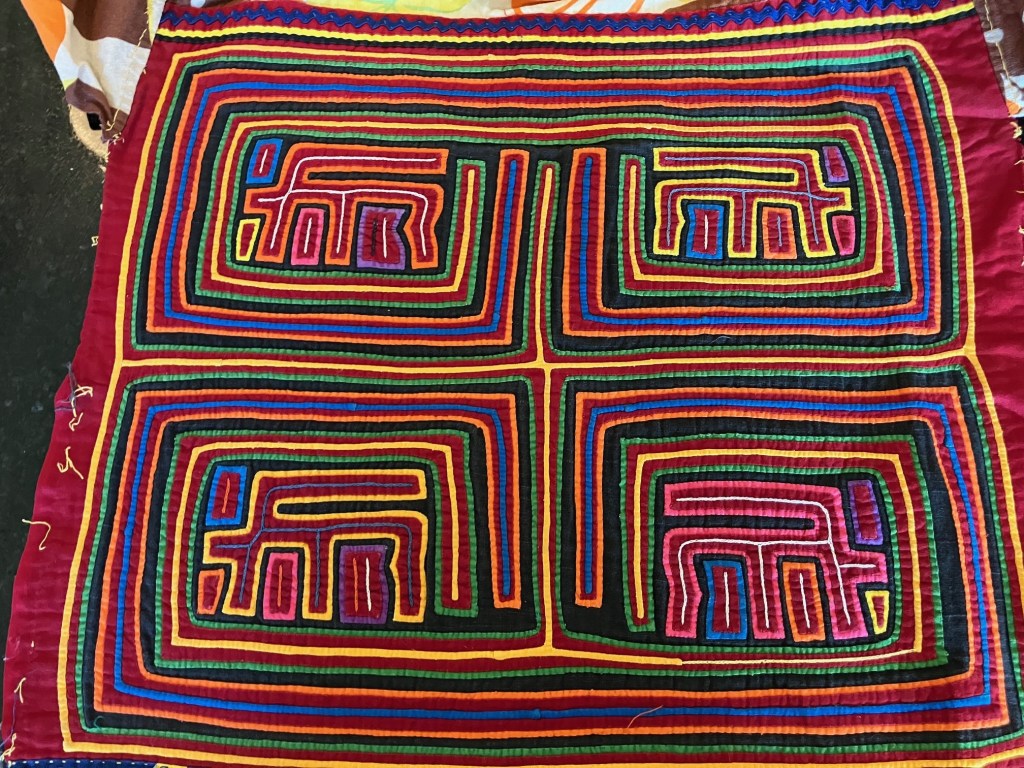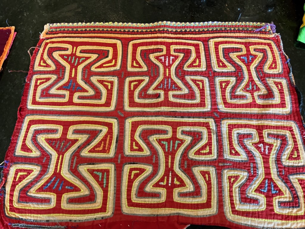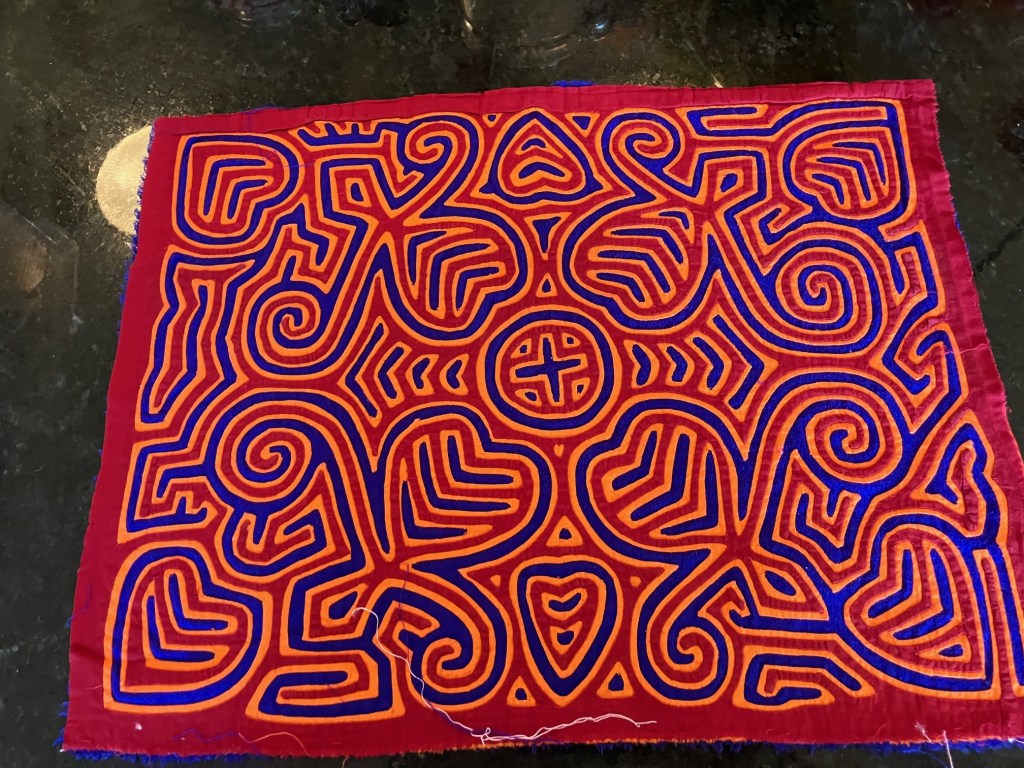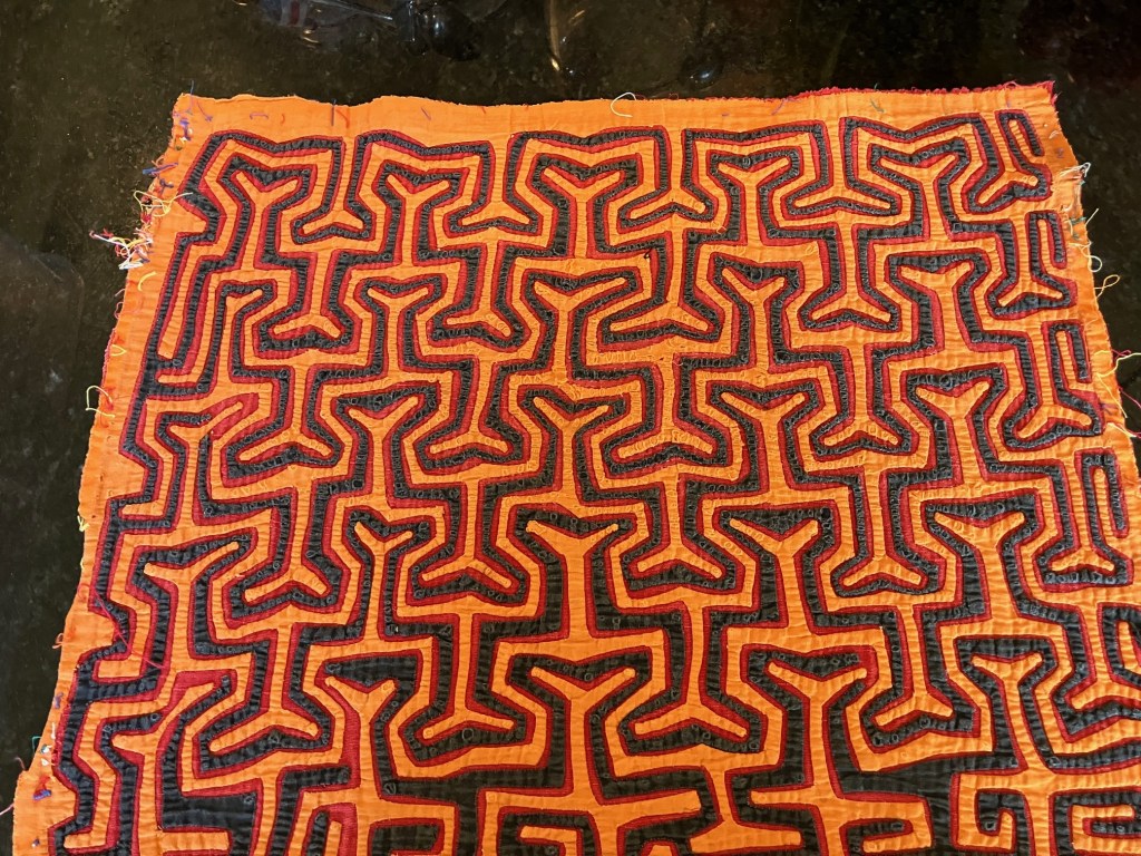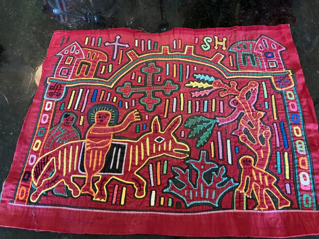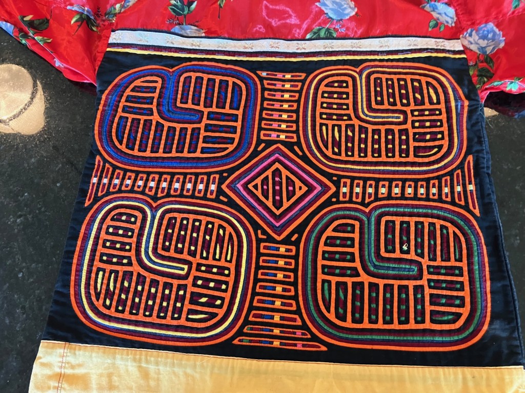 History of the Taylor Blanton Collection: I lived in Panama from 1972 to 1974 and went to the San Blas Islands at least once a month during those 2 years. We always stayed on Wichubwala where there were two outstanding mola makers-Gladys Iglesias and Yolanda Gonzalez. I have a collection of many single molas, most of which were purchased in the islands but some of which were purchased from Flory Saltzman.