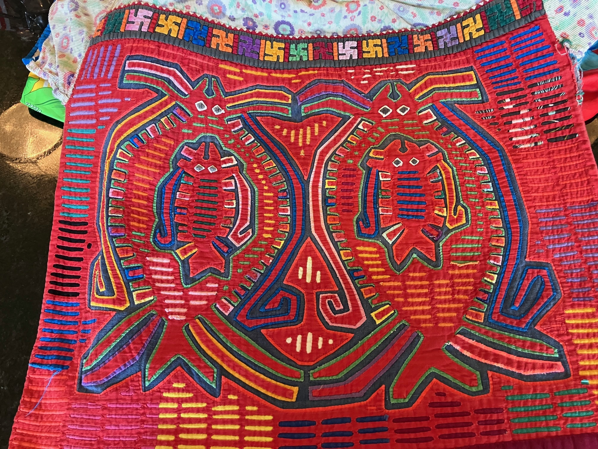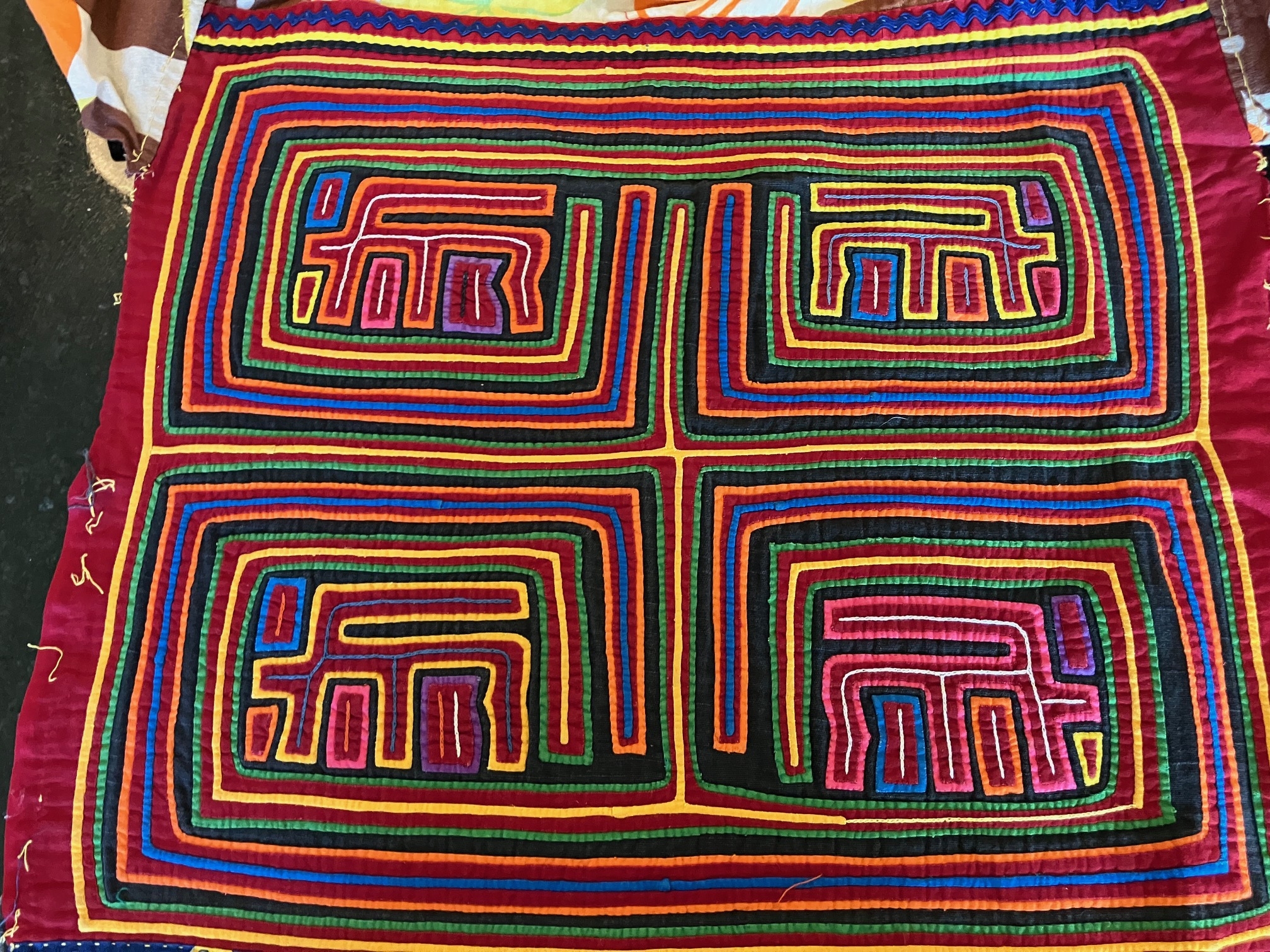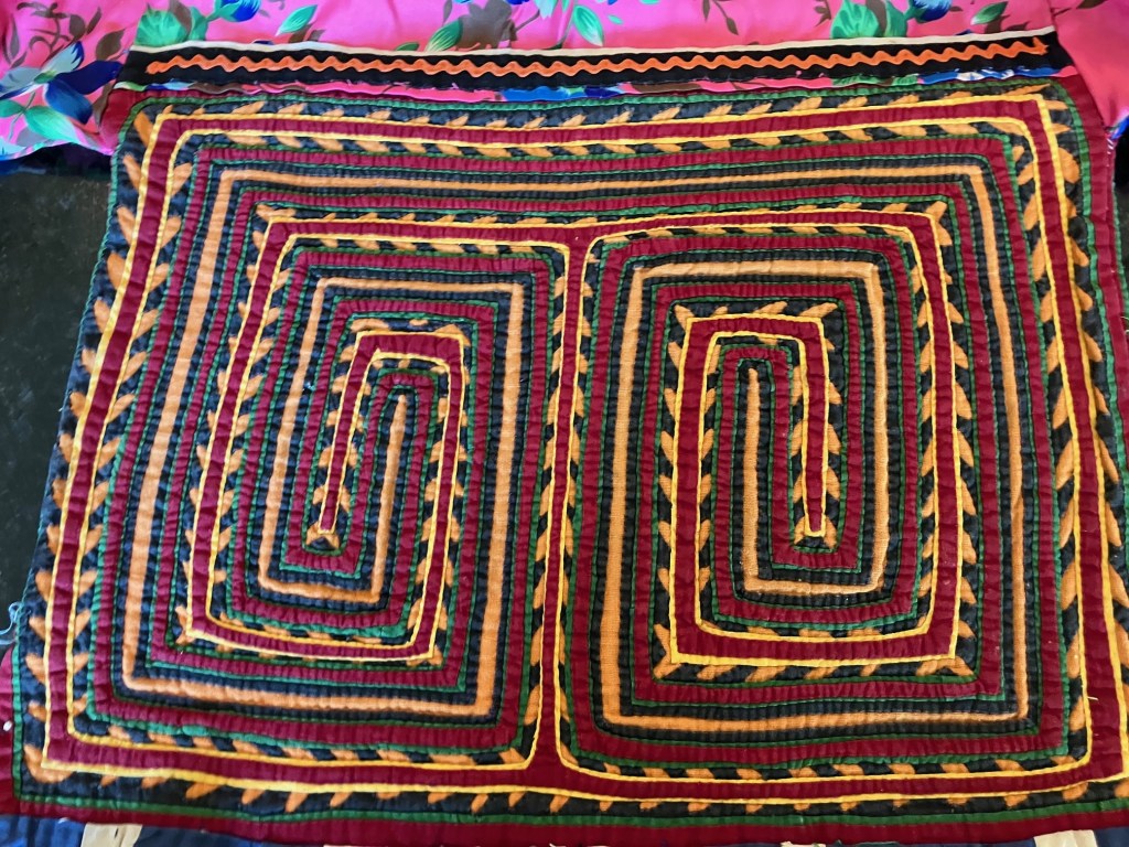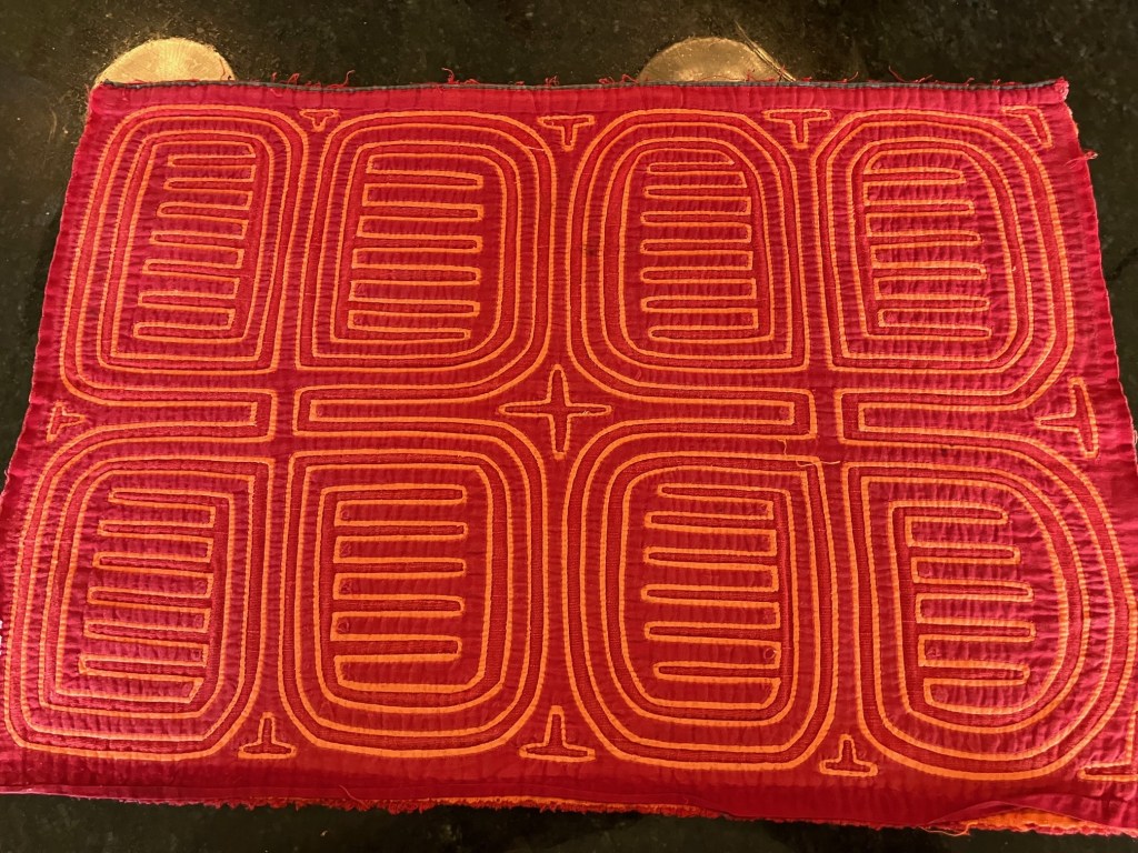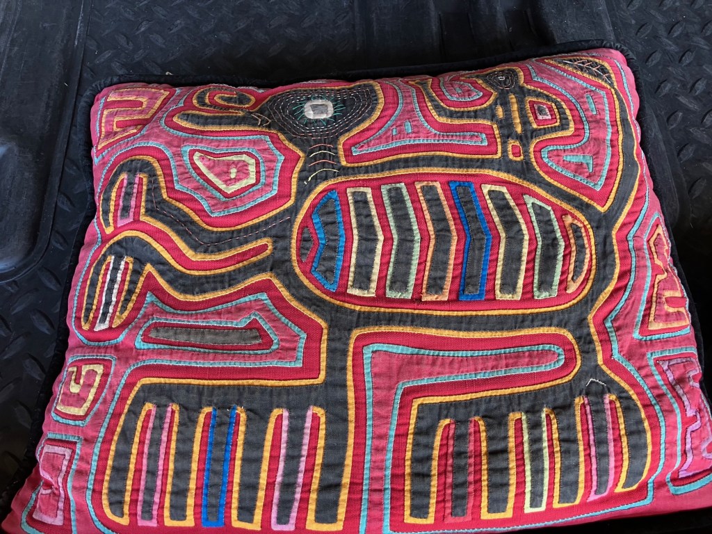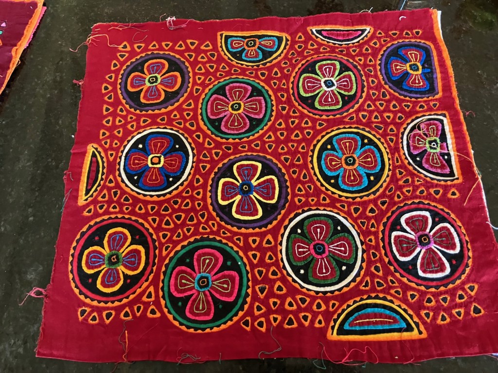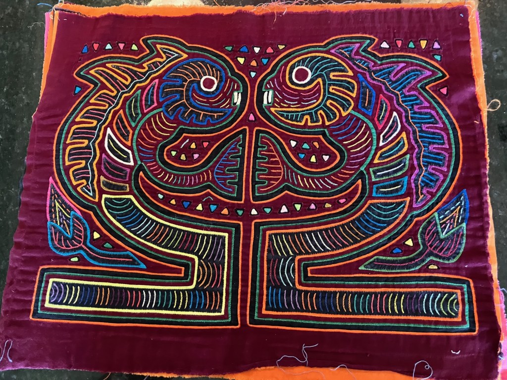 History of the Taylor Blanton Collection: I lived in Panama from 1972 to 1974 and went to the San Blas Islands at least once a month during those 2 years. We always stayed on Wichubwala where there were two outstanding mola makers-Gladys Iglesias and Yolanda Gonzalez. I have a collection of many single molas, most of which were purchased in the islands but some of which were purchased from Flory Saltzman.
