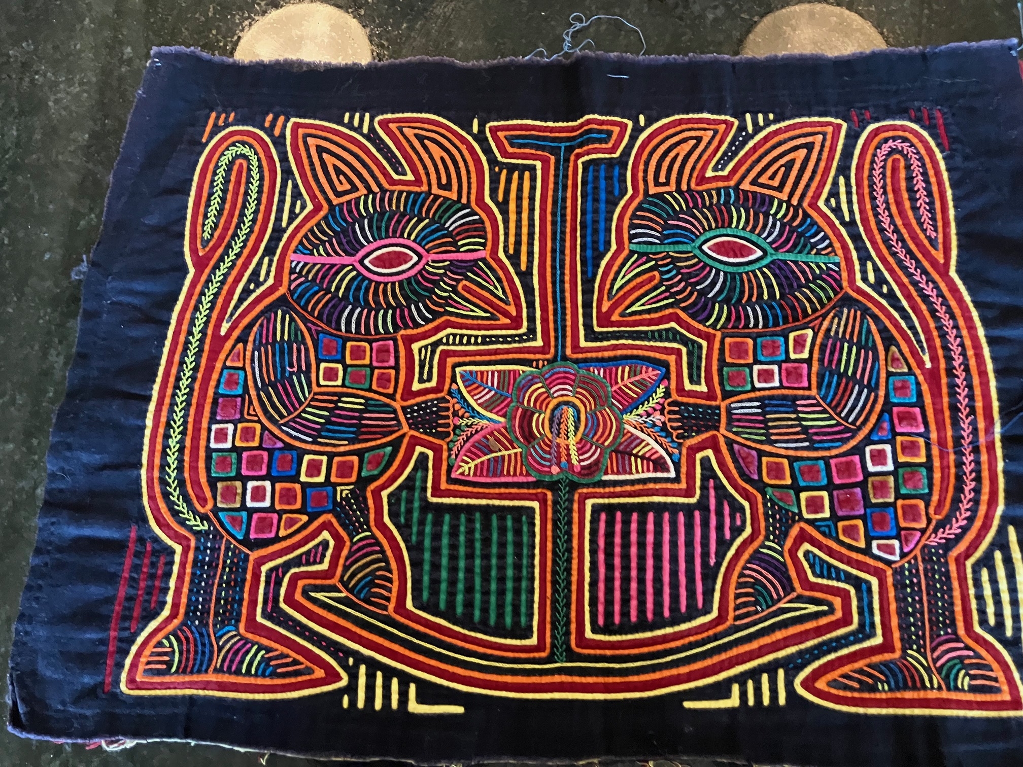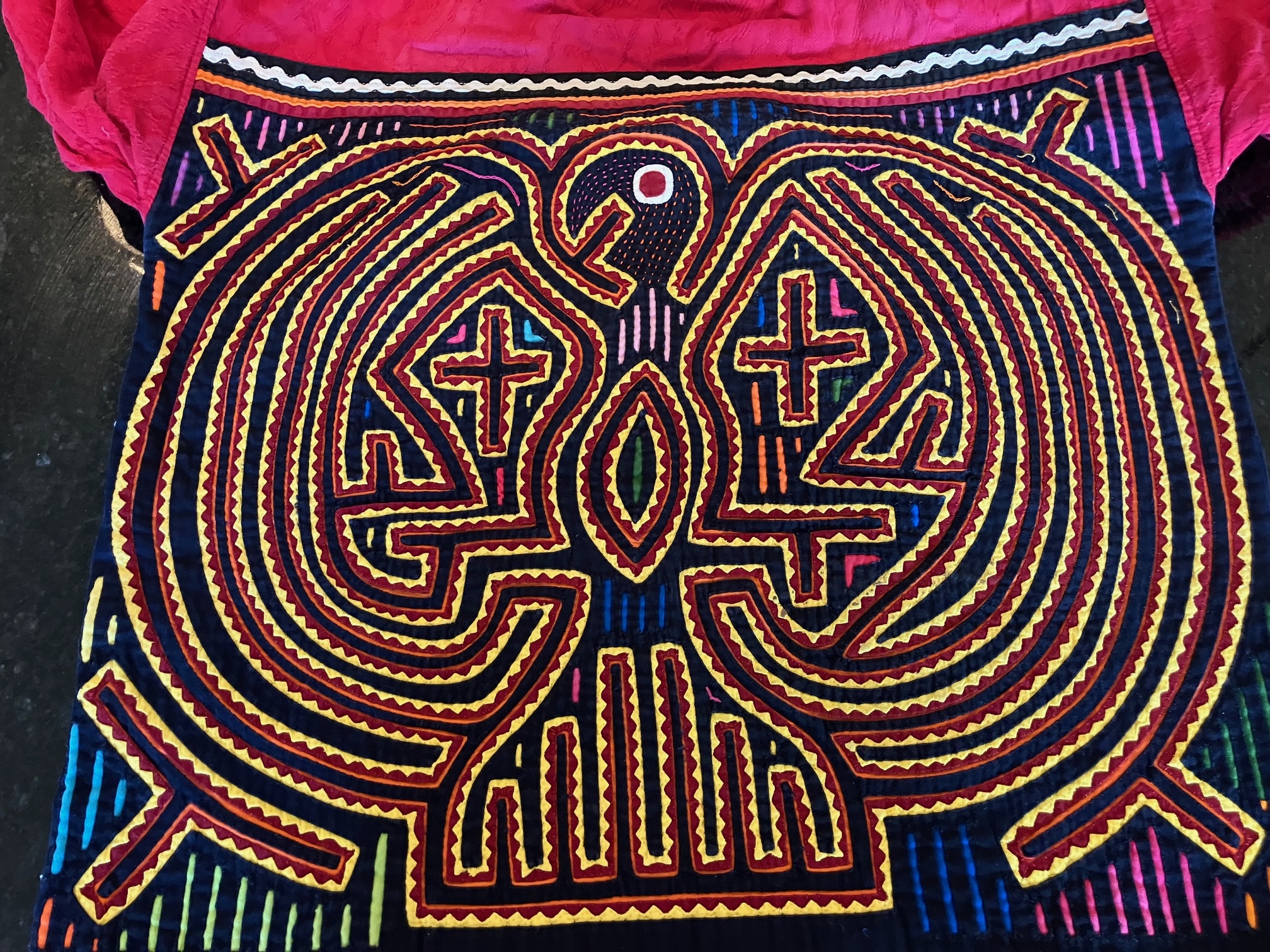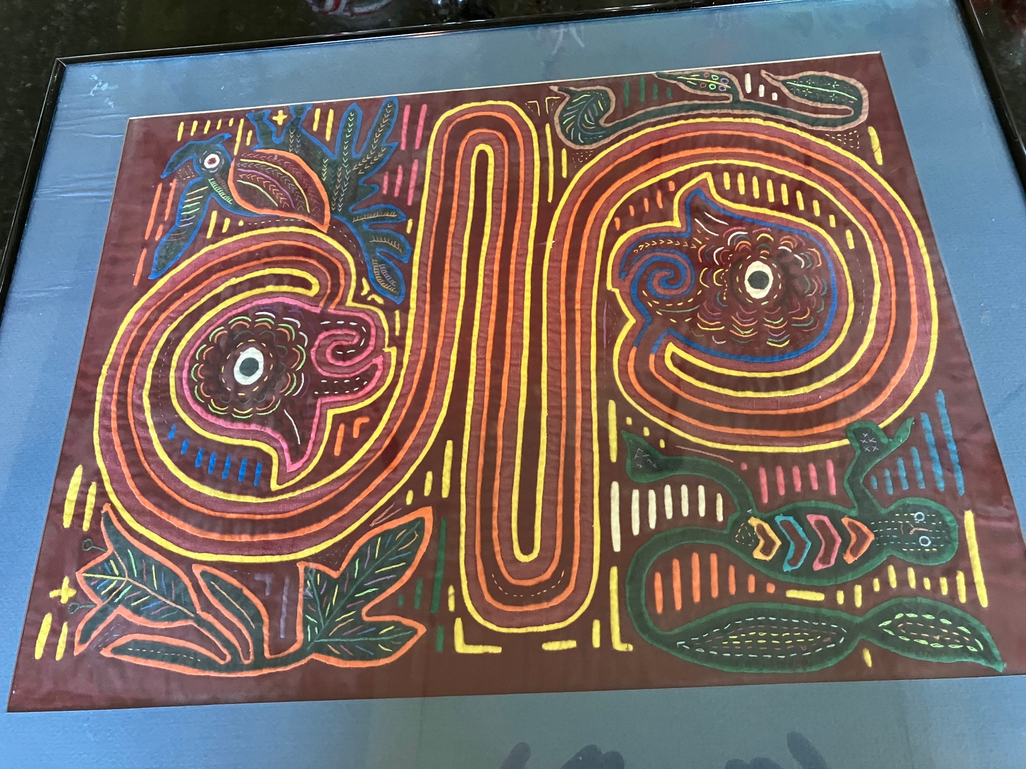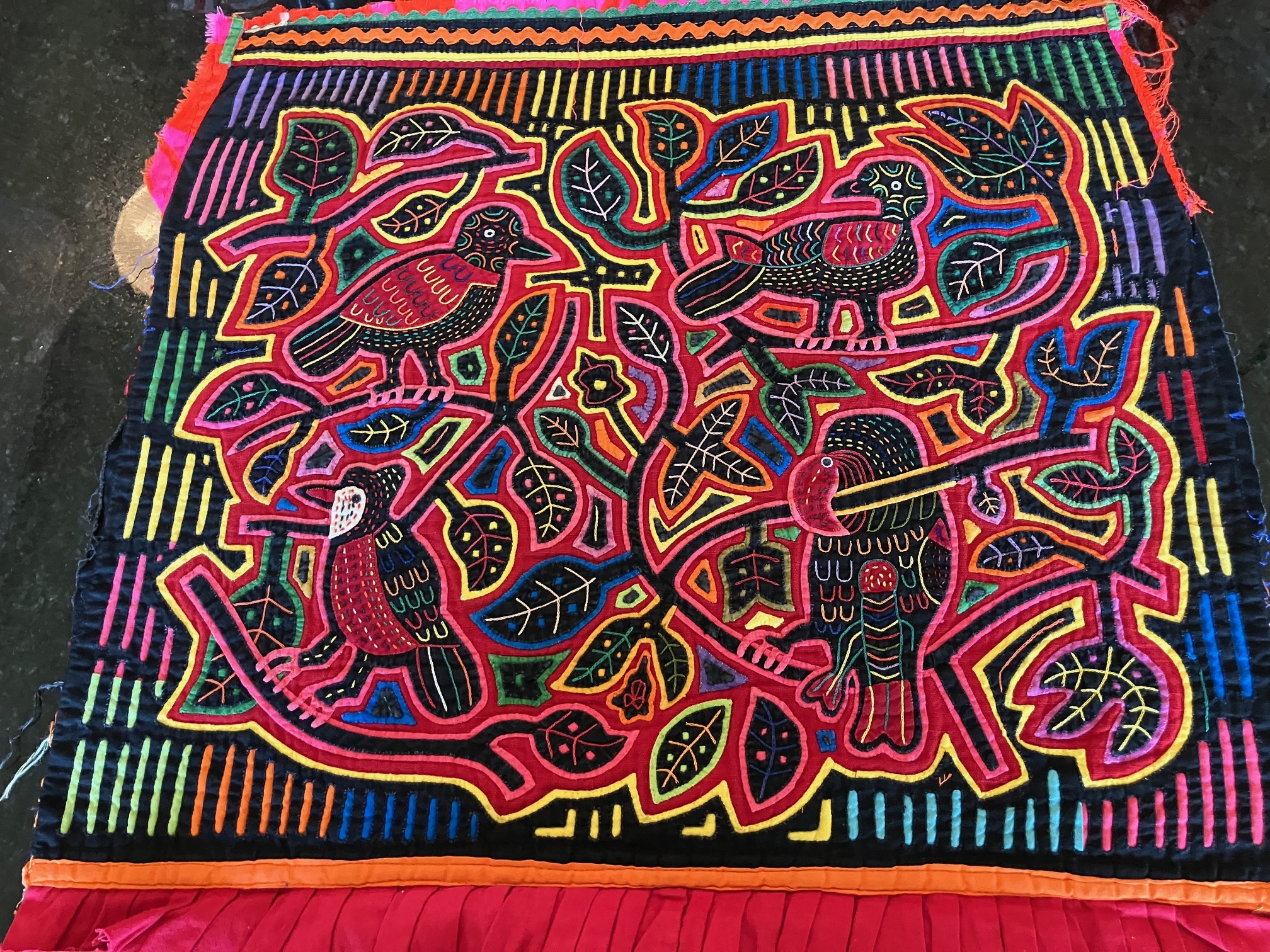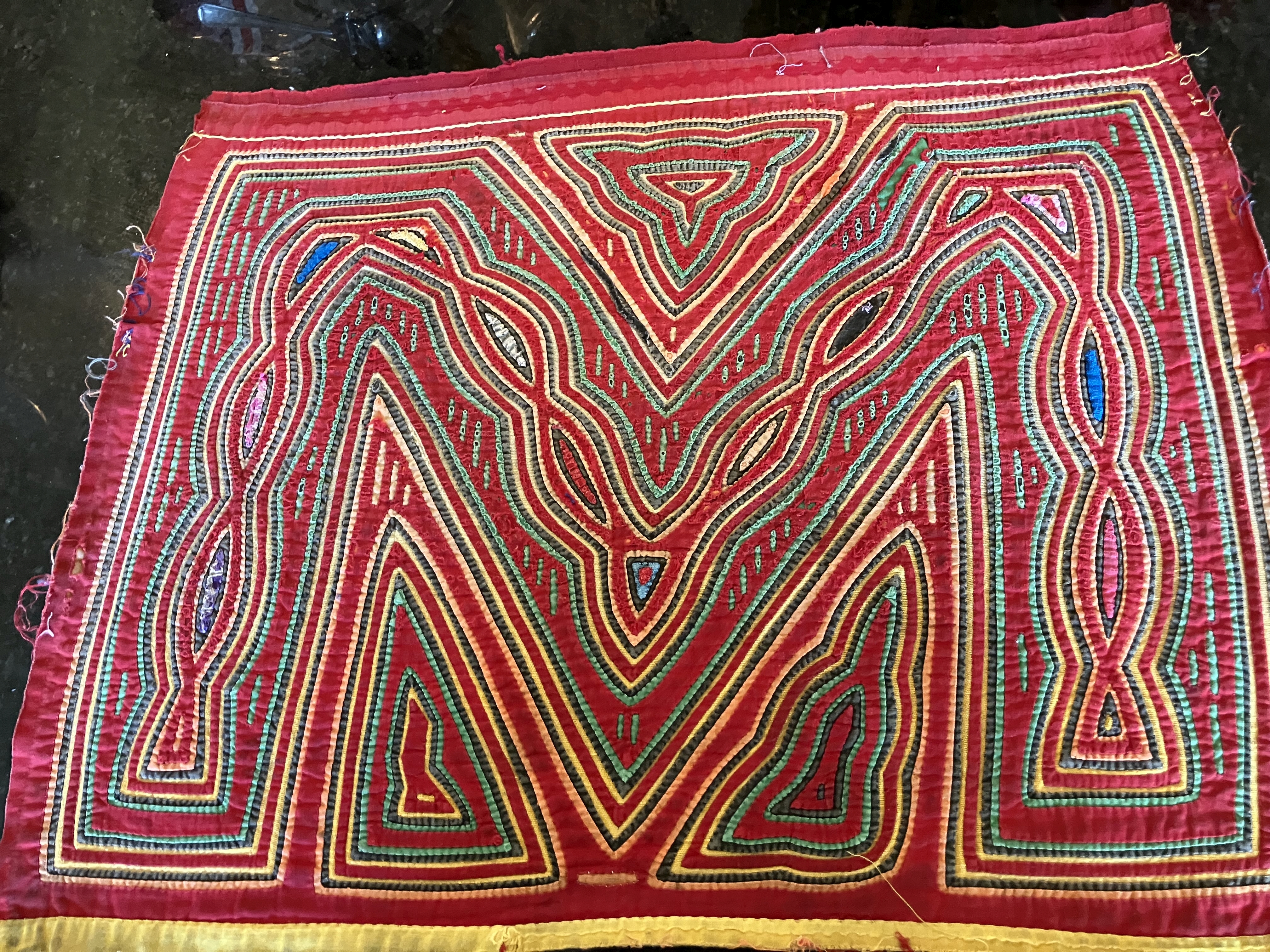 History of the Taylor Blanton Collection: I lived in Panama from 1972 to 1974 and went to the San Blas Islands at least once a month during those 2 years. We always stayed on Wichubwala where there were two outstanding mola makers-Gladys Iglesias and Yolanda Gonzalez. I have a collection of many single molas, most of which were purchased in the islands but some of which were purchased from Flory Saltzman.