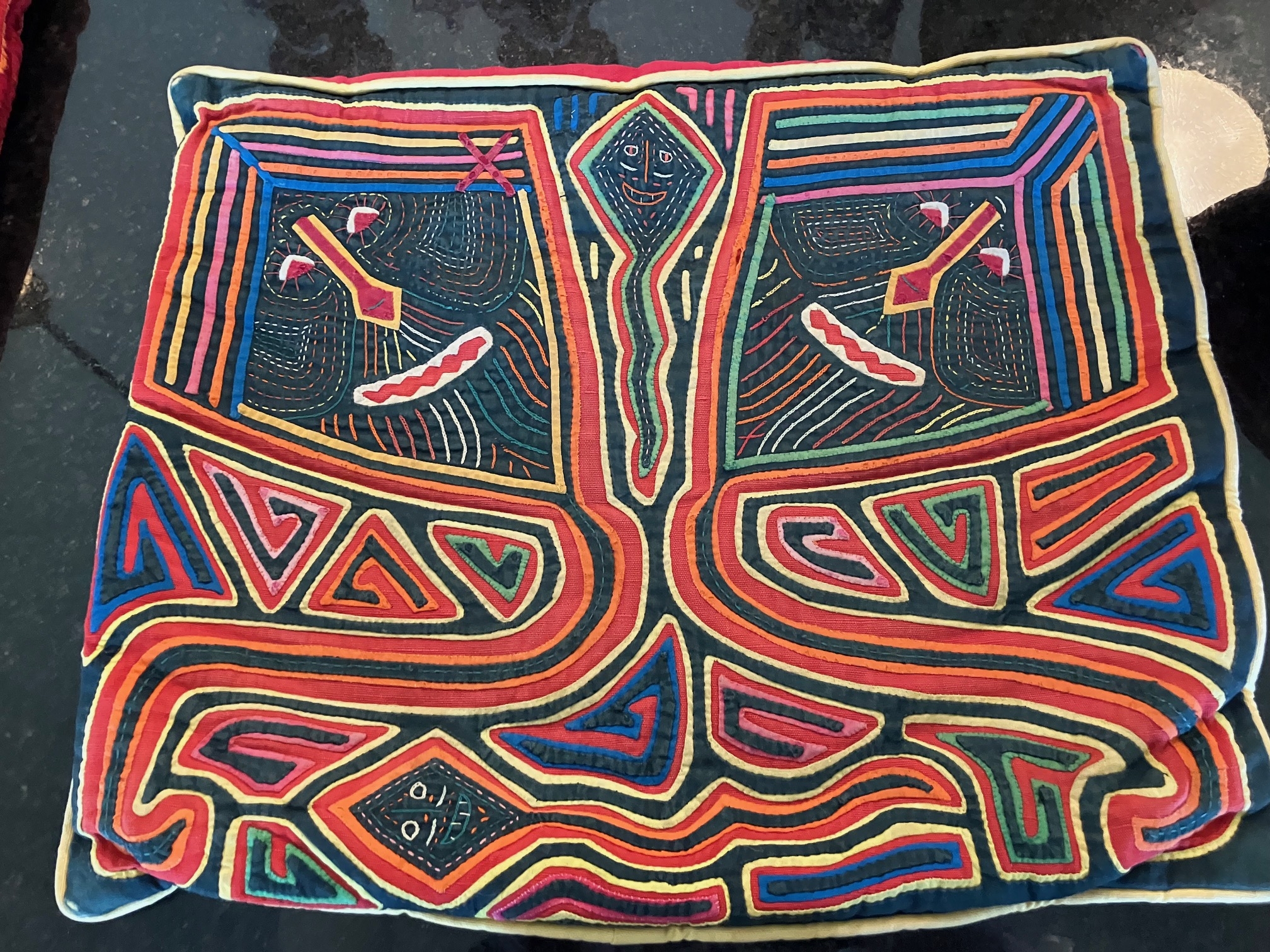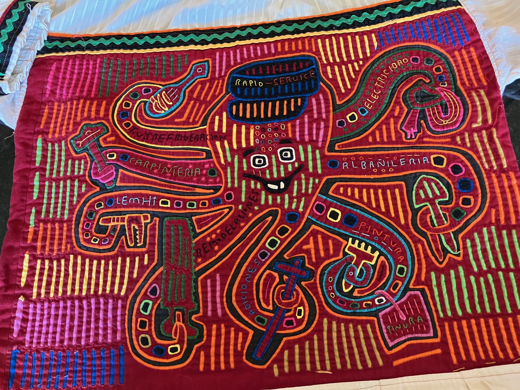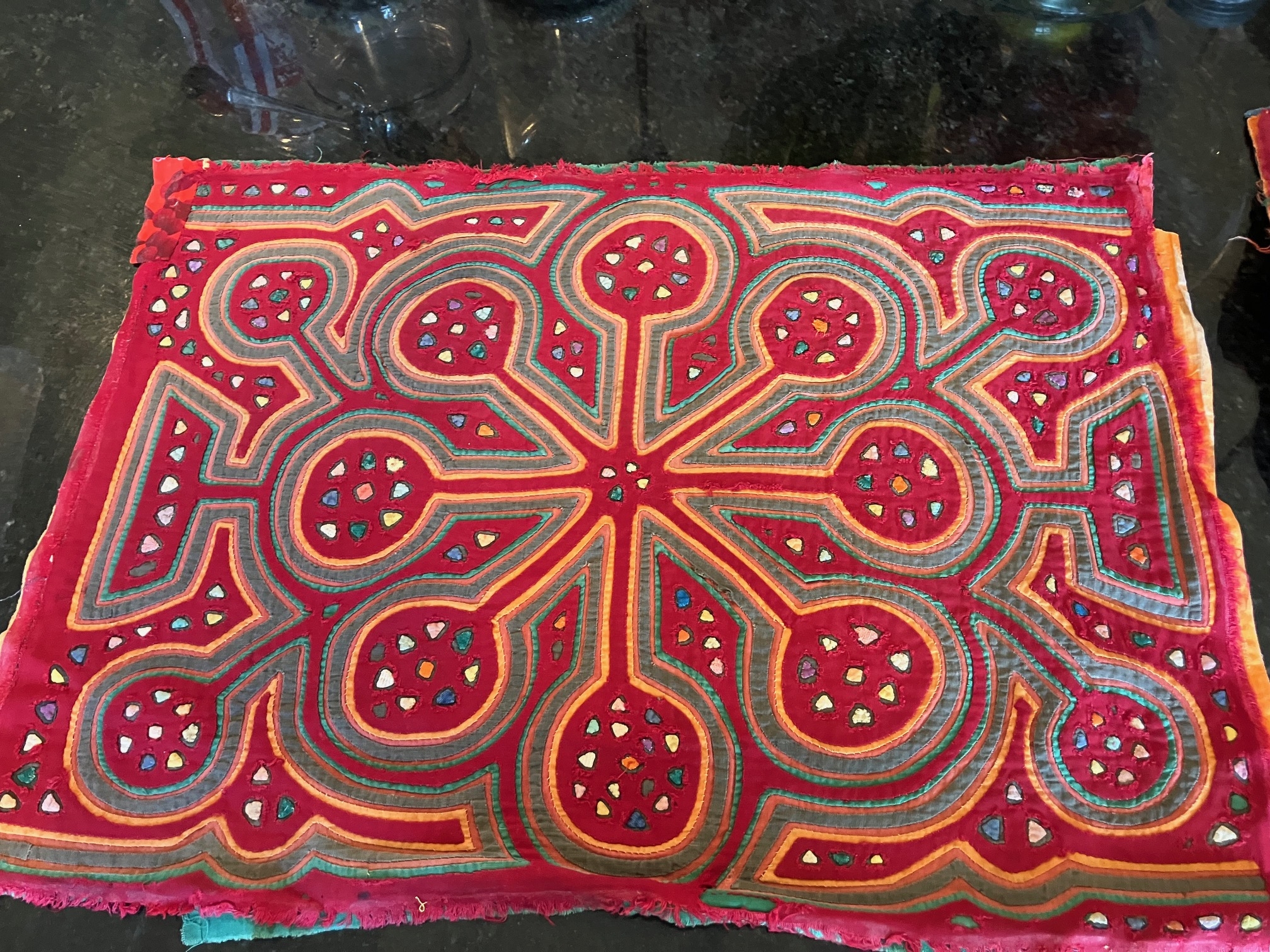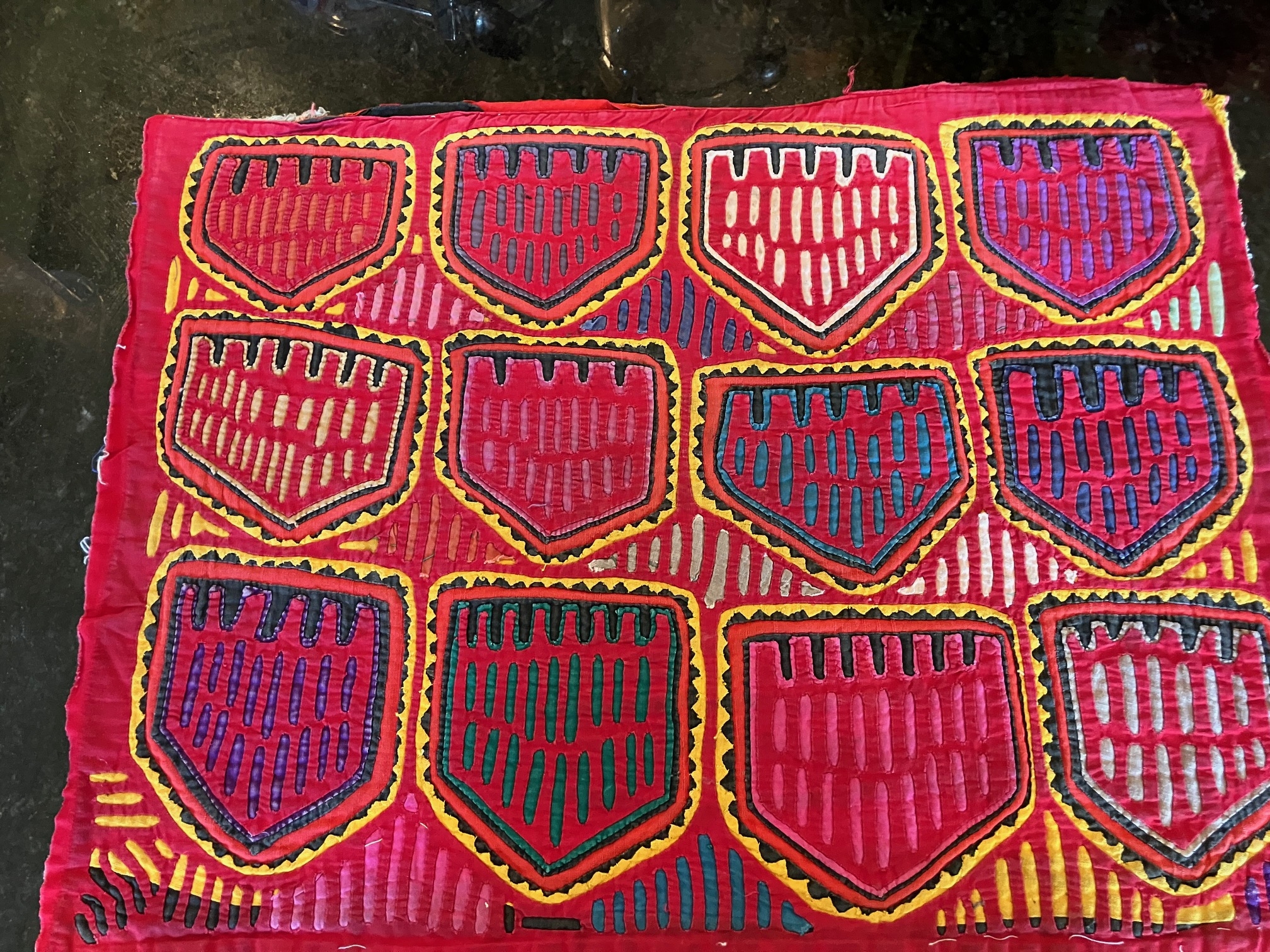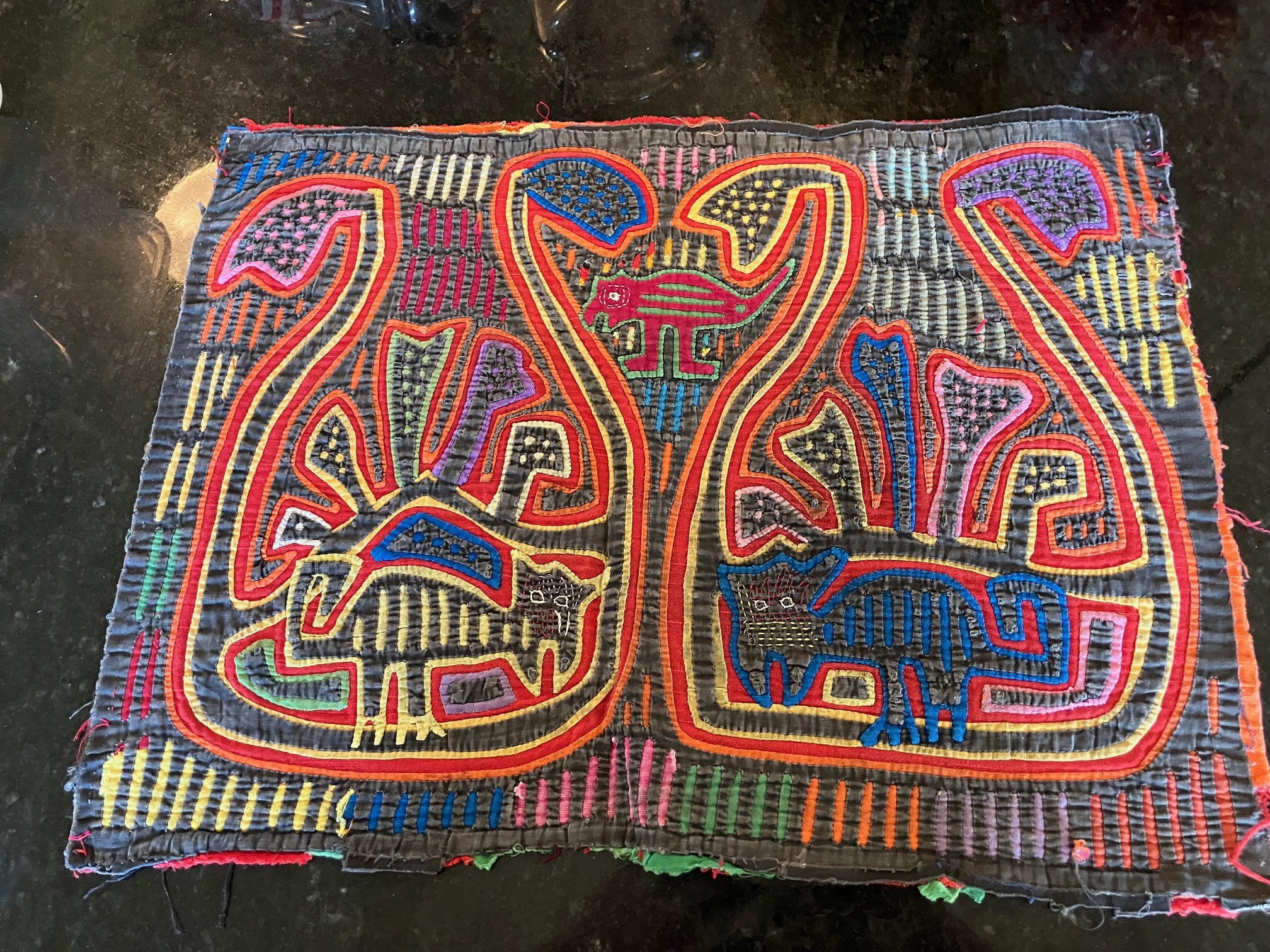 History of the Taylor Blanton Collection: I lived in Panama from 1972 to 1974 and went to the San Blas Islands at least once a month during those 2 years. We always stayed on Wichubwala where there were two outstanding mola makers-Gladys Iglesias and Yolanda Gonzalez. I have a collection of many single molas, most of which were purchased in the islands but some of which were purchased from Flory Saltzman.